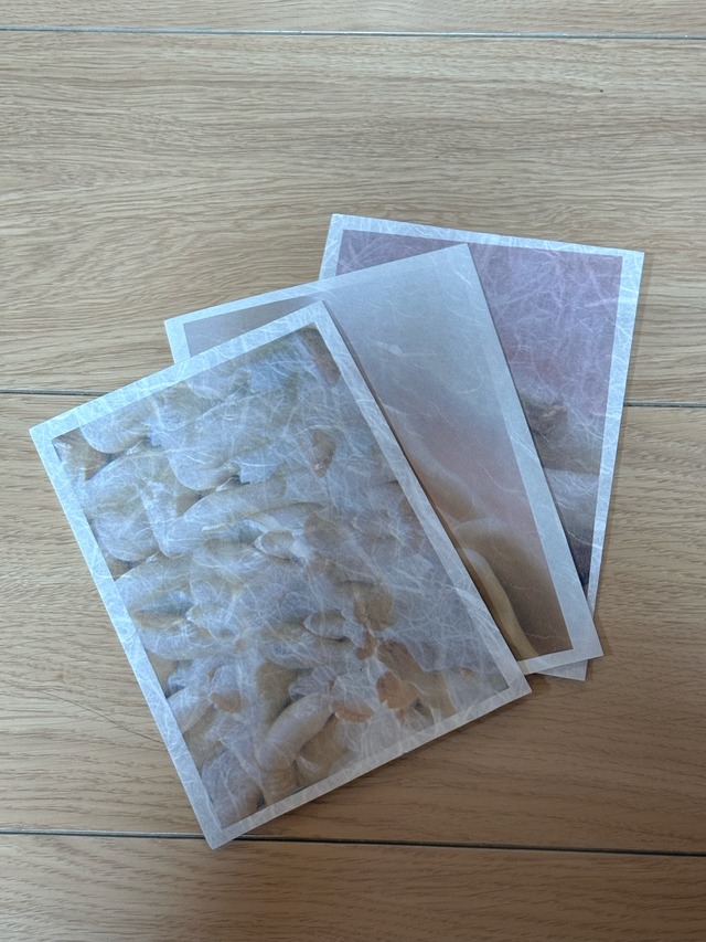 「IN ザ ROOM」の制作過程で作成した、和紙へのテストプリントです。 和紙特有のやわらかな透け感があり、光の当たり方によって表情が変わる、試作ならではの一枚です。 仕上がりはとても魅力的でしたが、安定した本制作には技術的に難しく、最終的には採用を見送った仕様となります。 ハガキサイズのプリントを2枚セットでお届けします。 2枚セットが1つ 3枚セットが1つ のみの販売です。 すべてサイン入りです。 完成品とは異なる、制作の過程を感じられる特別なプリントとしてお楽しみください。